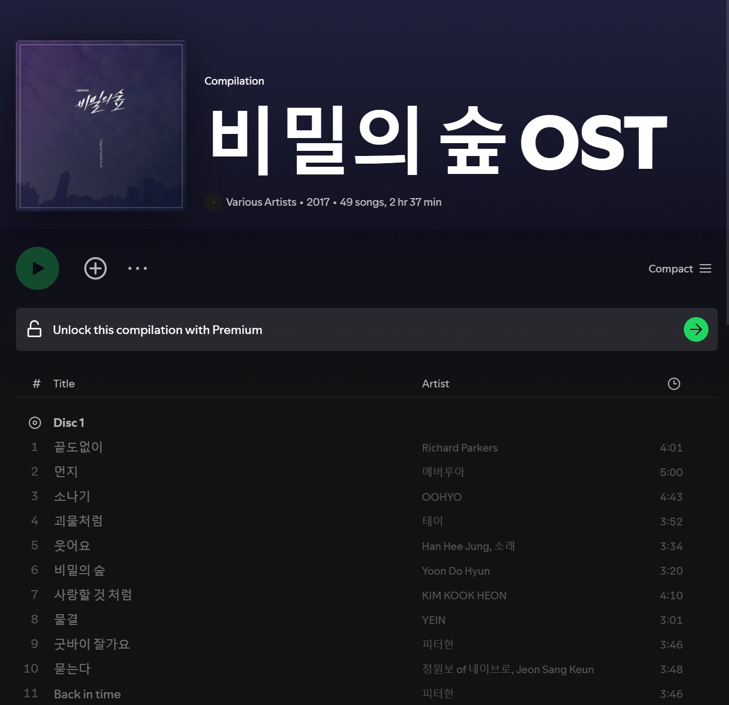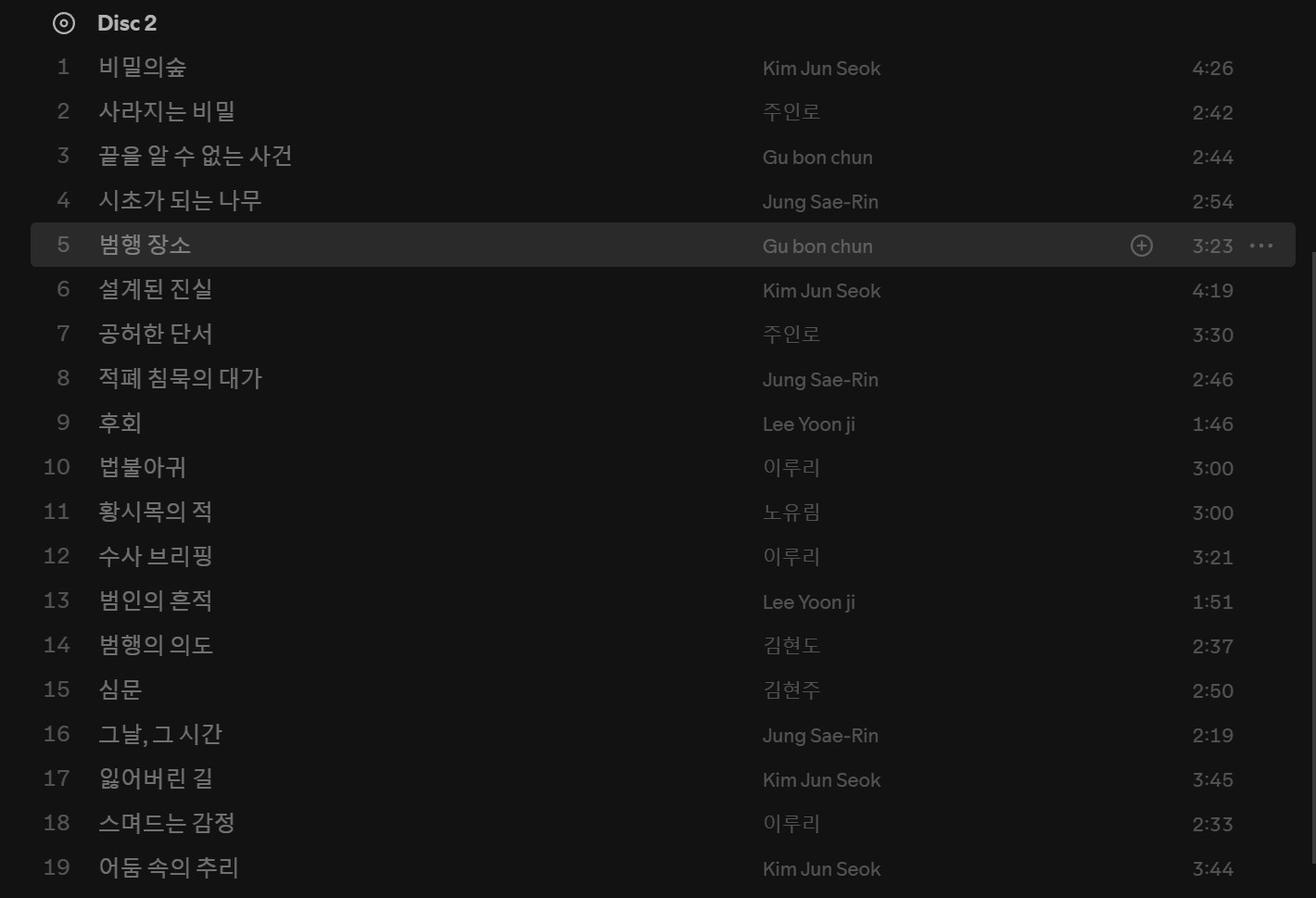 - 김준석의 ‘비밀의 숲’ (Forest): 드라마의 음울한 분위기와 잘 어울리며, 긴장감과 몰입도를 높이는 배경음악.