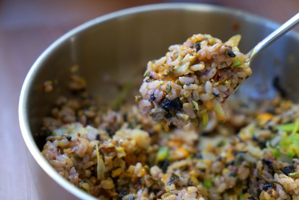 또한, 통영은 해조류가 풍부한 지역적 특성 덕분에 생미역과 톳나물이 비빔밥의 주재료로 쓰이며, 콩나물, 시금치, 부추, 가지, 애호박 등 계절에 따라 다양한 나물을 무치거나 볶아 색상에 맞춰 담아냅니다. 고추장 대신 국간장과 소금으로 간을 맞춰, 해산물과 나물 본연의 맛을 살리는 것이 특징입니다.